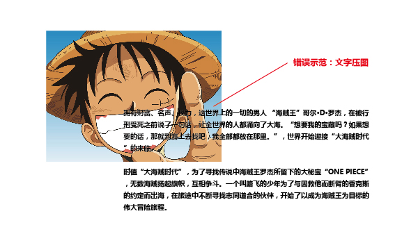 8.保证图像不压文字或者文字不压图片(在有些排版软件中,进行拼版或图象的重新置入等操作时,图文互斥经?;崾?,从而使图象压在文字上);保证文字在底图上的清晰度(当文字压在相近颜色的底图上时,要注意加阴影或勾边等修饰)。